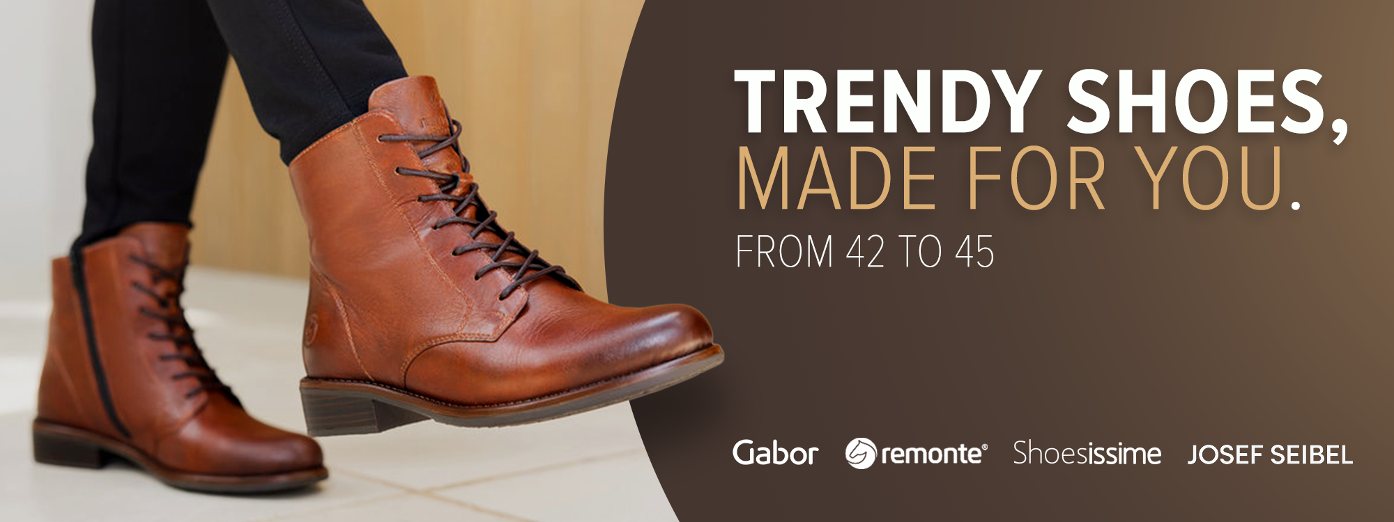 For the past 13 years, Shoesissime has been offering a wide selection of women's large size shoes, from 42 to 45. We're happy to welcome you to our women's plus size shoe store in Paris from Tuesdays to Saturdays from 10am to 7pm. Thanks to our 13 years of expertise, we can advise you in finding the shoes you'll feel good in. And for those who can't make it to the store, all our models can be found on our website, with home delivery or at a relay point.