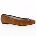 Ballerina Charlotte is all over the place and light.With her little bow, she is here in cognac colour, she is entirely in suede leather.