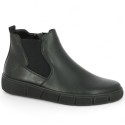 Mounted on a 3 cm flat sole, the bootie is in black leather and embellished with an elastic band on the side, for a cool, sober look!