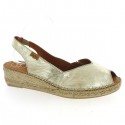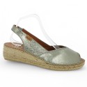 Mania is an espadrille by Toni Pons, available in large size. Here presented in gold leather.