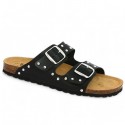 Their modern design includes two wide, adjustable straps on the top of the foot, ensuring perfect support with every step. Embellished with studs for an on-trend rock look, these mules add a touch of rebellious elegance to your outfit, whether for a casual day on the town or an evening out with friends.