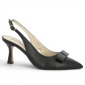 Mounted on an 8 cm heel, the pump features a pointed toe and an open heel. Its fine adjustable ankle strap will ensure your support.