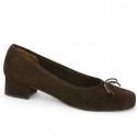 Découvrez le modèle "Vica", trotteur à petit talon en cuir nubuck marron.