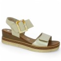 Optez pour une allure chic et un confort optimal avec la sandale à talon compensé beige et dorée "Mona" de la marque Remonte.