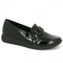 Découvrez les mocassins "Bruna" de la marque Remonte, en vernis noir au look sport-chic avec une chaîne assortie sur le dessus.