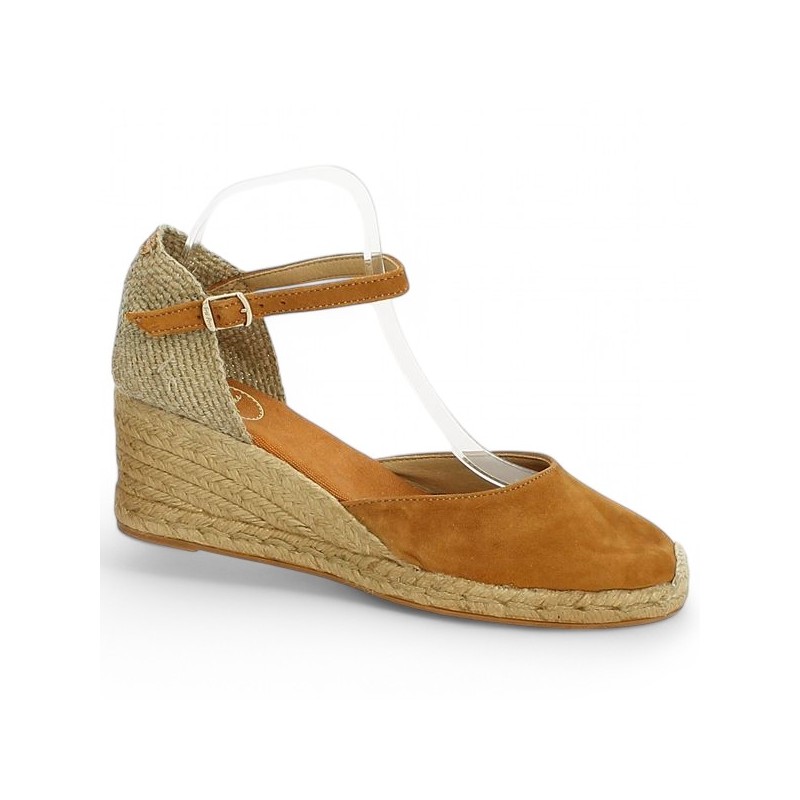 Son cuir velours camel apporte une touche élégante et raffinée, tandis que son talon en corde de 6,5 cm sublime la silhouette avec naturel. Dotée d'une bride fine à la cheville, elle assure un maintien parfait et un look estival chic.