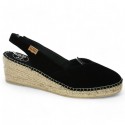 Découvrez la Cathy, l'espadrille de Toni Pons, présentée ici en cuir velours noir.
