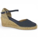 Ici déclinée en tissu bleu marine, elle apporte une touche naturelle et légère, parfaite pour sublimer toutes vos tenues estivales. Son talon compensé en corde de 6,5 cm affine la silhouette tout en garantissant un excellent confort.