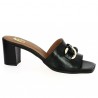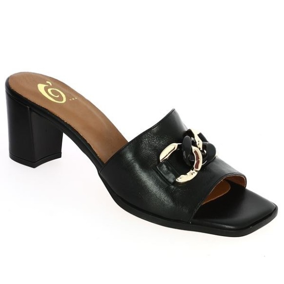 Les mules à talon "Dina" sont ici présentées en cuir noir avec chaîne sur le dessus du pied. C'est l'accessoire parfait pour habiller vos tenues habillées avec style et élégance ! Le talon stable de 6.5 cm offre un excellent maintien tout en allongeant votre silhouette. Avec leur design chic et leur touche de sophistication apportée par la chaîne, ces mules sont un incontournable pour votre garde-robe.