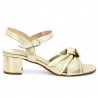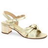 Avec son talon de 5 cm et sa couleur doré, elle habillera parfaitement vos tenues estivales tout en restant confortables et chics. Fabriquée en Italie, elle est dotée d'une semelle intérieur et extérieur en cuir.