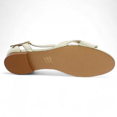 Découvrez l'ultime touche de glamour avec "Cheyenne", notre sandalette en cuir doré, ornée d'un nœud délicat à l'avant et d'un élégant contrefort au talon. Agrémentée d'une jolie bride fine à la cheville, cette sandalette polyvalente se marie parfaitement avec toute tenue, qu'elle soit décontractée ou chic, jupe ou pantalon.