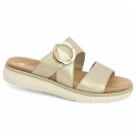 Cette mule en cuir doré de la marque Remonte séduit par son design sobre et élégant, idéal pour un usage quotidien comme pour une tenue plus habillée.