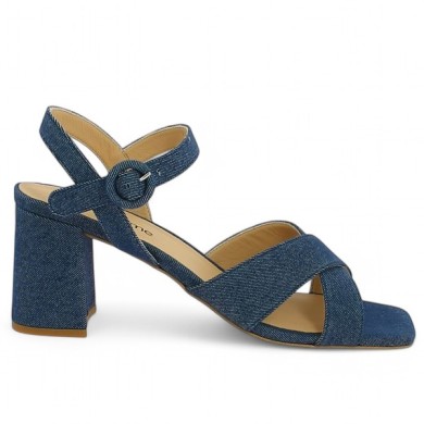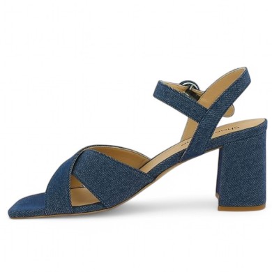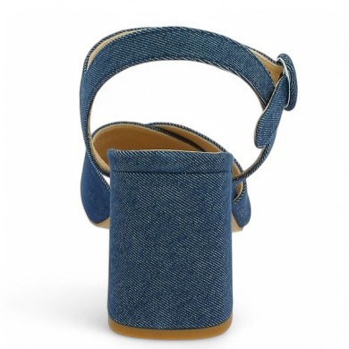 Présentée ici dans une élégante version en textile effet jean, elle apporte une touche décontractée chic à toutes vos tenues estivales. Son talon épais de 8 cm assure une stabilité optimale tout en allongeant la jambe avec confort.